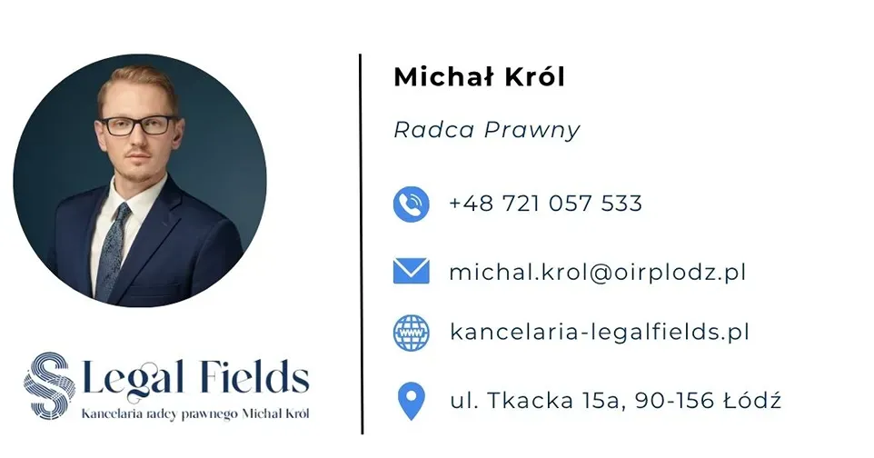 Nazywam się Michał Król i jestem radcą prawnym wpisanym na listę Okręgowej Izby Radców Prawnych w Łodzi. Jestem również rolnikiem prowadzącym rodzinne gospodarstwo rolne. Nazwa Kancelarii "Legal Fields" nie jest przypadkowa - to połączenie dwóch sfer zawodowych, które stanowią fundamenty mojej działalności: prawa i rolnictwa. Choć moje obszary praktyki koncentrują się na kwestiach związanych z nieruchomościami, to zakres usług Kancelarii jest znacznie szerszy. Pracuję na wielu polach prawa, zawsze z taką samą dbałością o szczegóły i zaangażowaniem. Posiadam specjalistyczną wiedzę, którą łączę z praktycznym zrozumieniem specyfiki rynku nieruchomości, biznesu, rolnictwa i odnawialnych źródeł energii. Na stałe współpracuję z jedną z największych kancelarii prawnych w województwie łódzkim, co umożliwia mi świadczenie usług prawnych w sposób kompleksowy - od transakcji handlowych, przez postępowania administracyjne, spory sądowe po doradztwo w prowadzeniu bieżącej działalności gospodarczej. Nieustannie rozwijam swoje kompetencje, biorąc udział w specjalistycznych szkoleniach, kursach oraz konferencjach branżowych. Pozwala mi to nie tylko utrzymywać wysoki poziom merytoryczny, ale również śledzić zmieniające się trendy i regulacje – zarówno w obszarze prawa, jak i standardach rynkowych. Dzięki temu mogę oferować Klientom aktualne, dostosowane do realiów rozwiązania.
